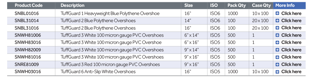 | SNBL31016 | TuffGuard 2 Blue Polythene Overshoes | 16in | ISO6 | 100 | 20x100 |