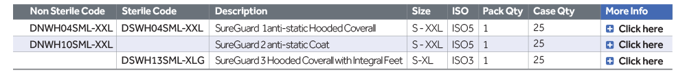 | | DSWH31MED-XXL | Washed Coverall with Integral Feet (Bunny Suit) | M-XXL | ISO5 | Each | 20 |