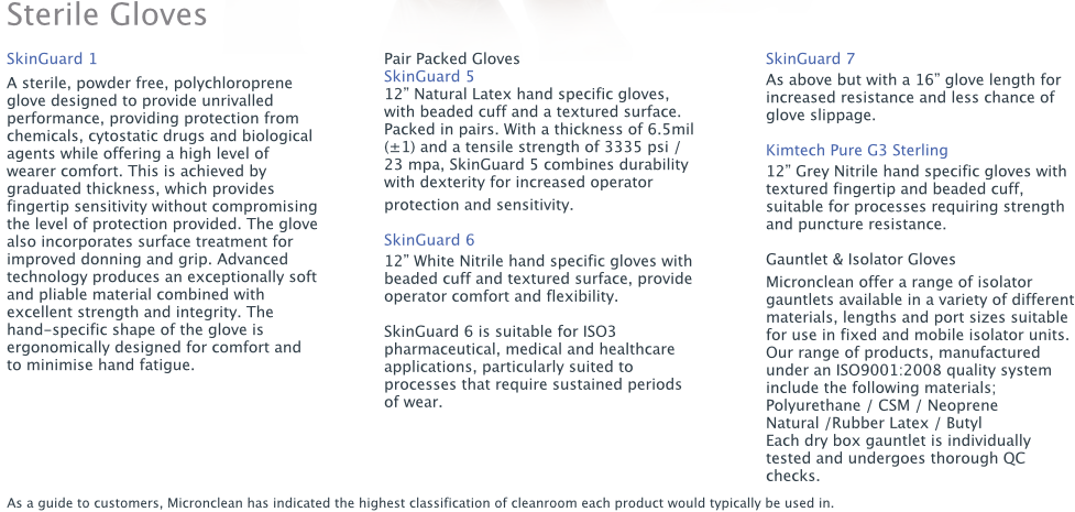 | GSNW07060-90 | SkinGuard 7: White Nitrile 16in Hand Specific Glove (STERILE) | 6.5-9.0 | ISO5 | 10 Pairs | 20x10 Pairs | 499.67 |